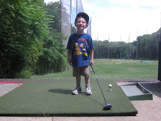 I was out of town for Fathers' Day (at my sweet cousin Clare's wedding), but James celebrated with Daddy and Grandpa by going "golfing" (driving range and putting green).